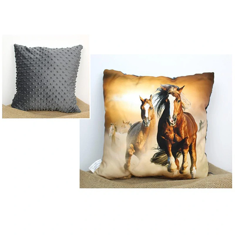 Vankúš s koníkmi je vhodný ako dekoračný prvok do interiéru. Vankúš je vyrobený z jemnej tkaniny, je super hebký, a má štvorcový tvar.