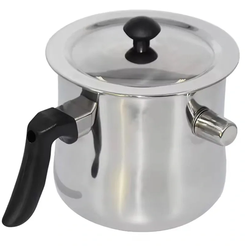 Tento kovový hrnček na varenie mlieka je ideálnym pomocníkom do každej domácnosti. Vďaka dvojitým stenám zabraňuje pripáleniu aj vykypeniu mlieka, čím šetrí váš čas aj nervy. Priestor medzi stenami sa plní vodou, ktorá zaisťuje rovnomerné ohrievanie.
