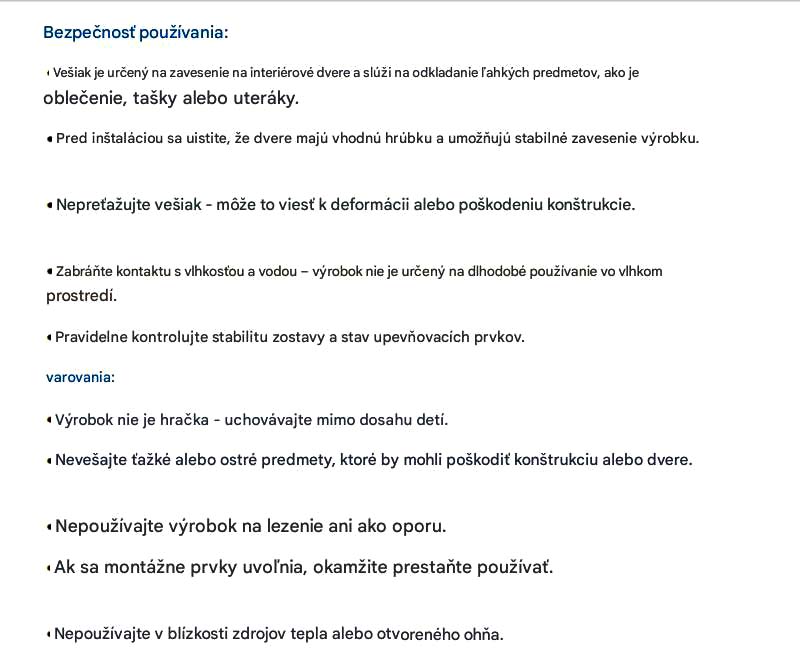Návod na použitie vešiaka na dvere