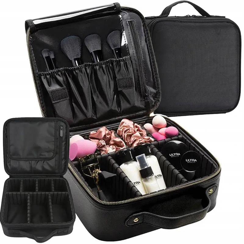 Kozmetický kufrík – cestovná kozmetická taška s priehradkami, čierna, 23 × 26 × 10 cm