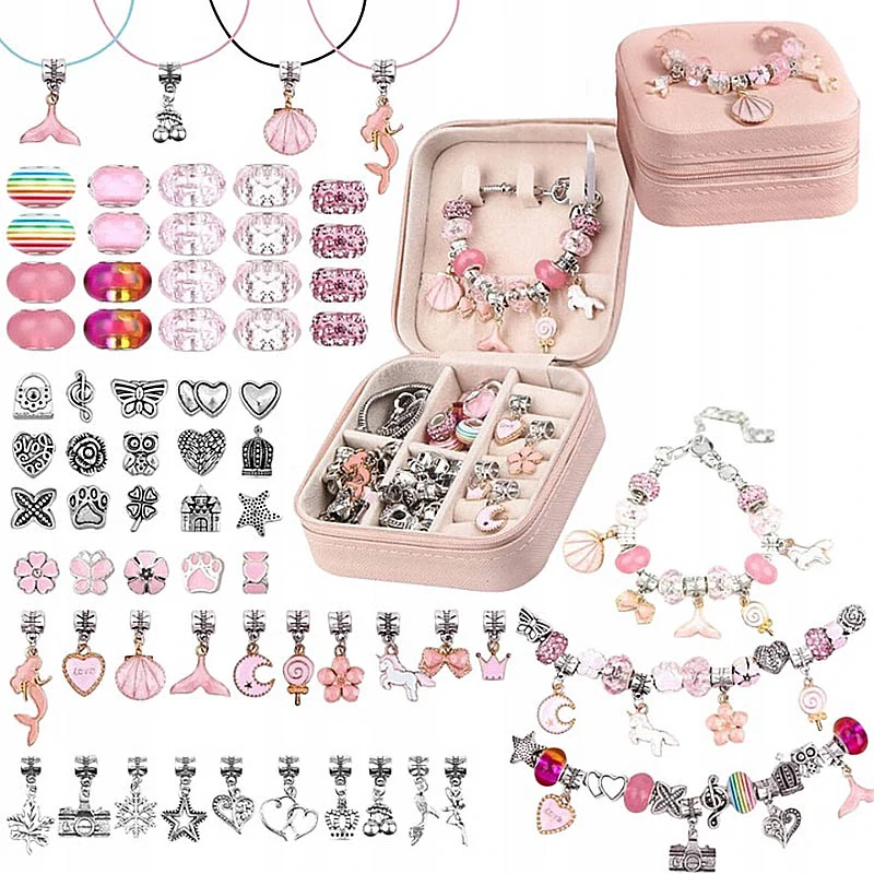Kompletný set 66 dielov – náramky, náhrdelníky, koráliky a prívesky