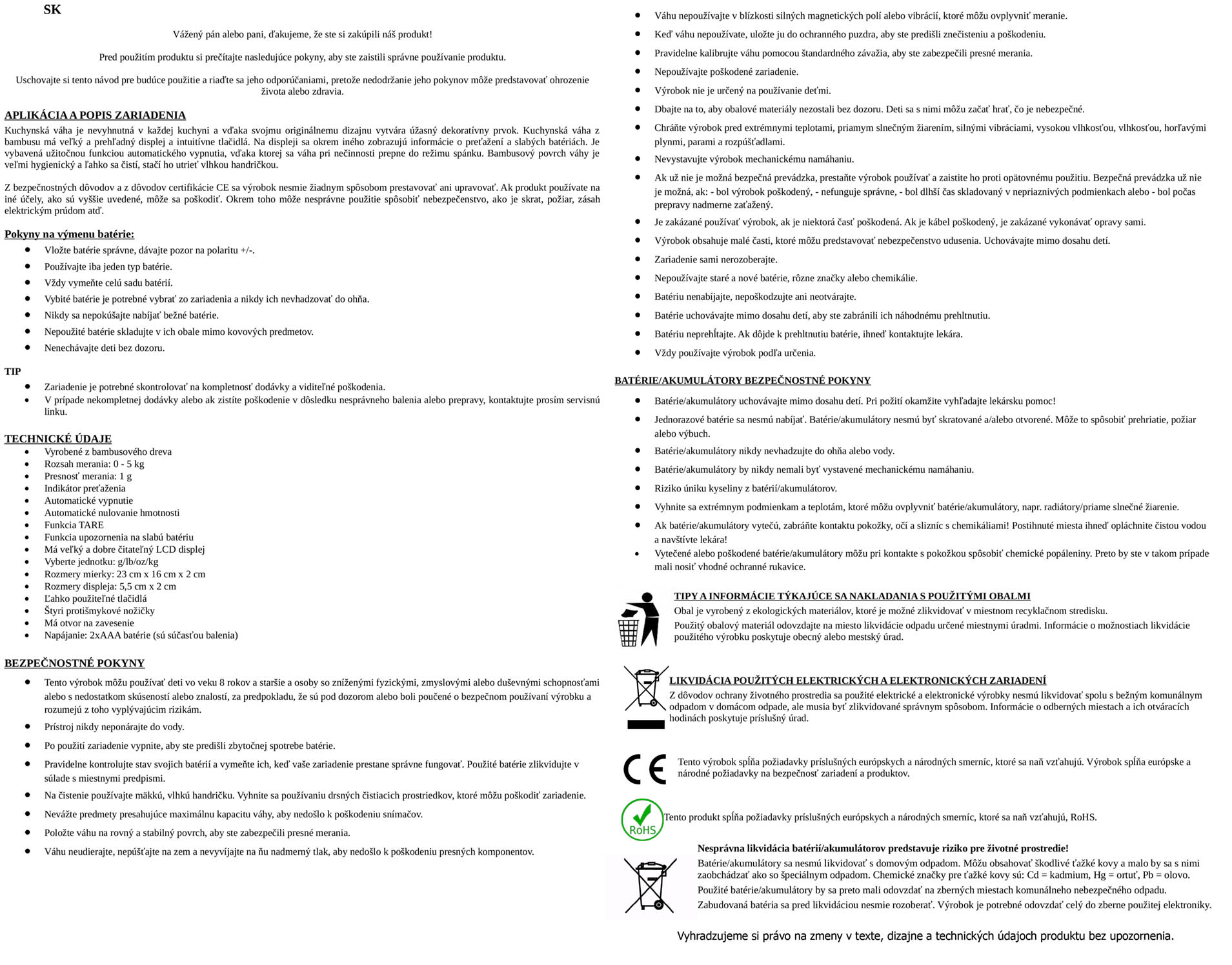 - Kuchynská bambusová váha s LCD displejom do 5 kg