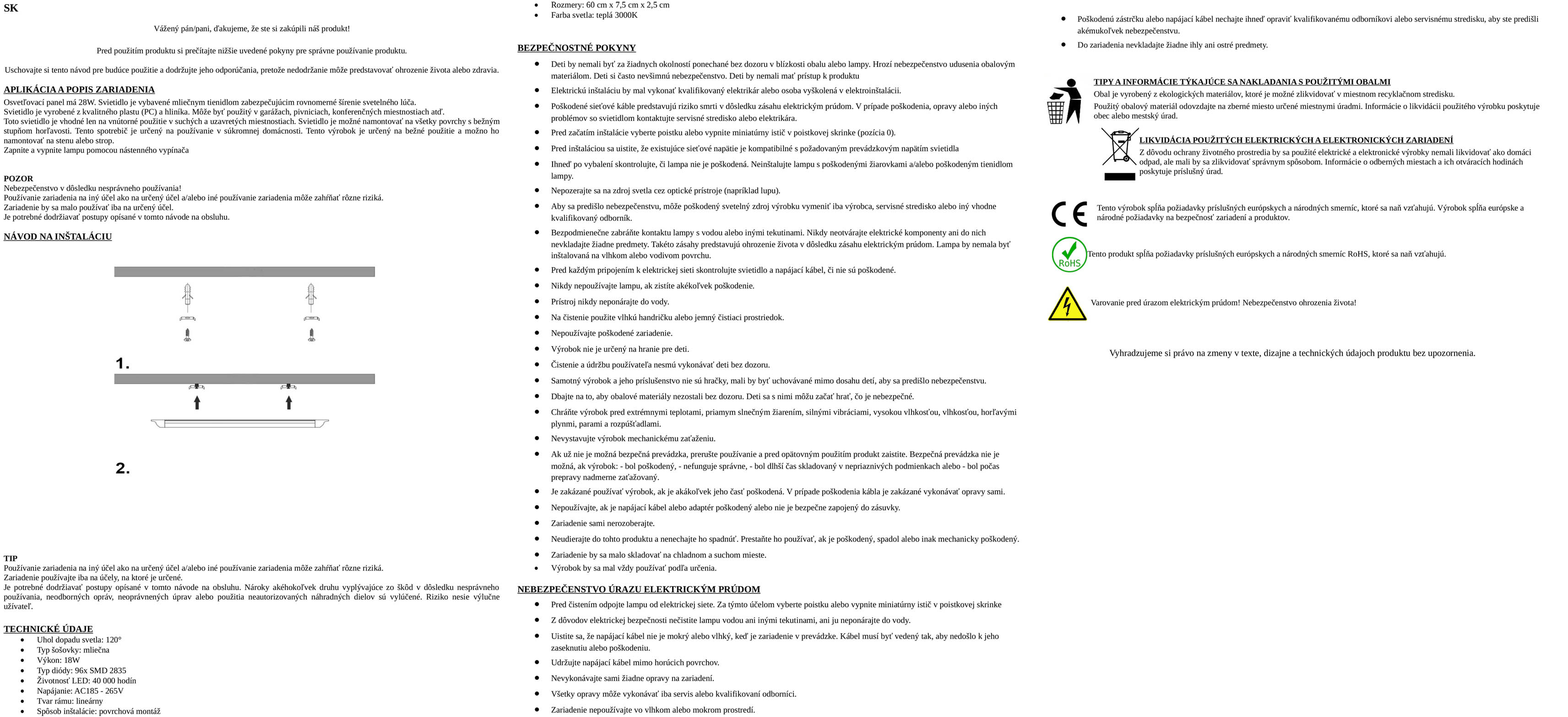 LED svietidlo je ideálnou náhradou za žiarovky, žiarivky alebo sodíkové výbojky. Panel má 18W a dĺžku 60cm. Je vybavená mliečnym tienidlom zabezpečujúcim rovnomerné šírenie svetelného lúča.