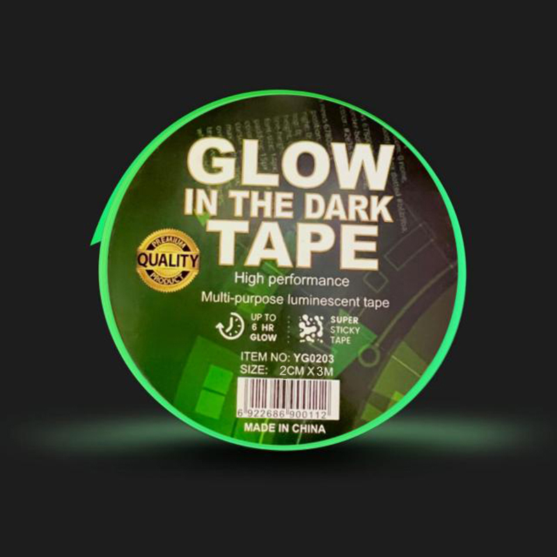 100% fluorescenčná páska, ktorá v tme svieti. Po absorbovaní slnečného svetla poskytuje úplné osvetlenie v tme v noci. Samolepiaca páska je vodeodolná a ľahko odstrániteľná.