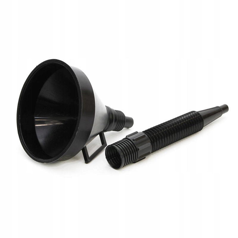 Plastový lievik sa skladá z dvoch častí a je čiernej farby. Môžete ho použiť na nalievanie kvapalín do auta alebo v domácnosti.