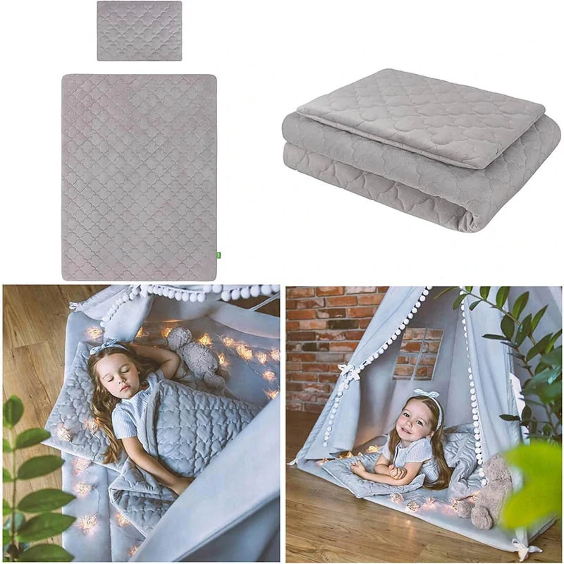 Poskytnite svojmu dieťaťu maximálne pohodlie pri spánku doma, v škôlke alebo na cestách. Mäkký zamatový set pozostáva z prešívanej deky a vankúšika, ktorý je ideálny od prvých mesiacov života.
