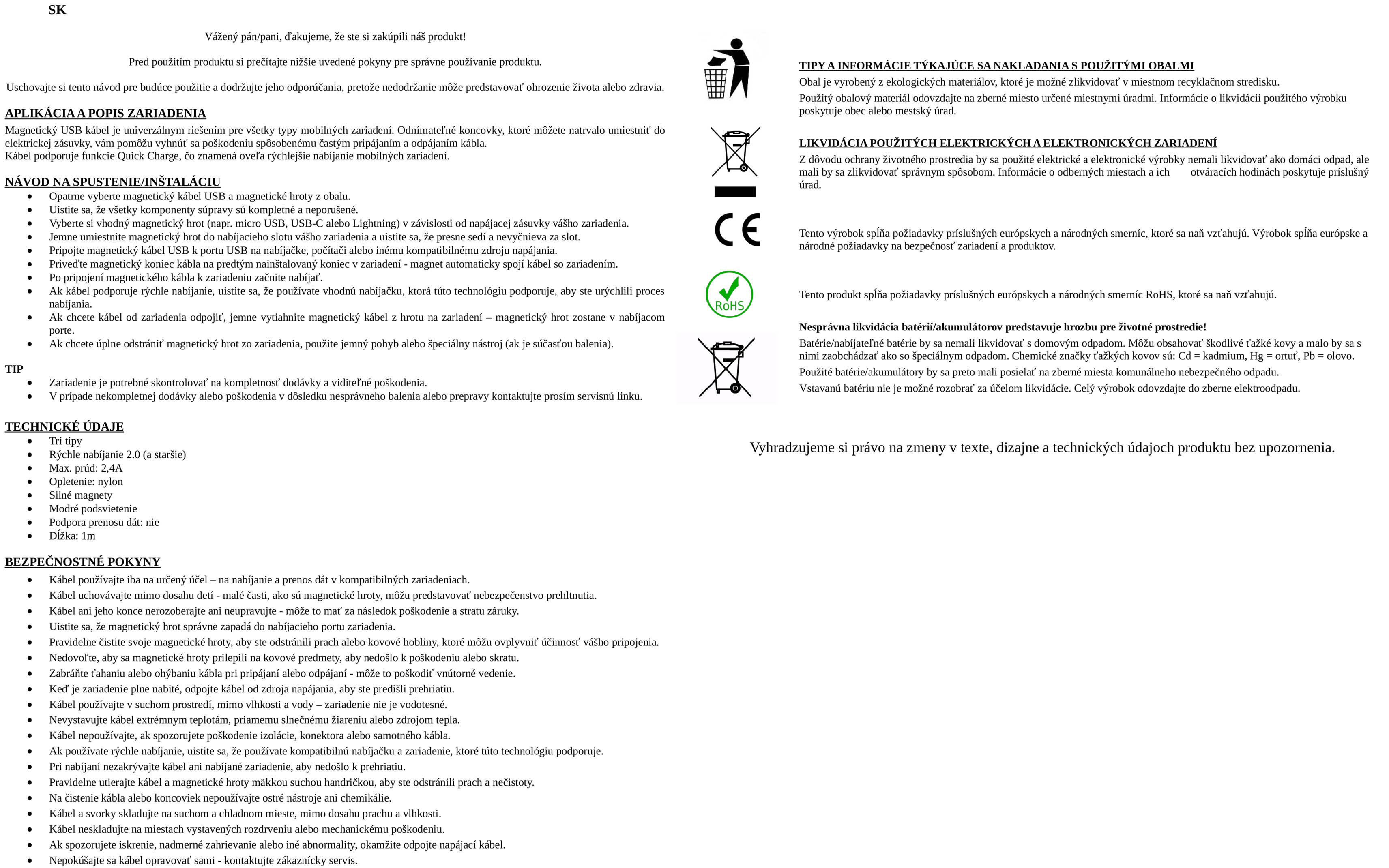 Návod na použitie magnetického kábla USB 3v1