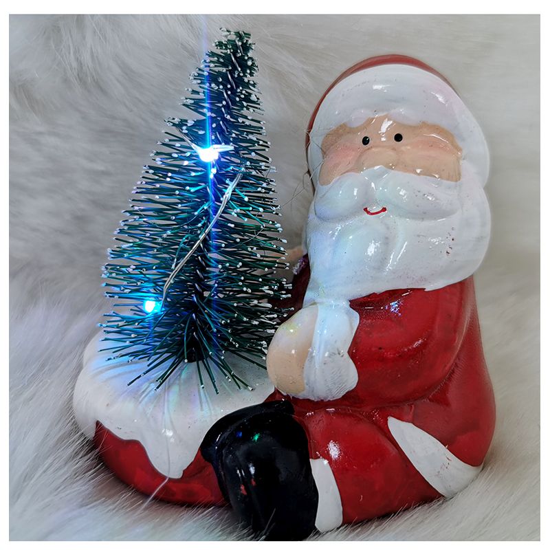 Nádherná keramická dekorácia - Mikuláš sediaci pri stromčeku, ktorý po zapnutí bude meniť farby.