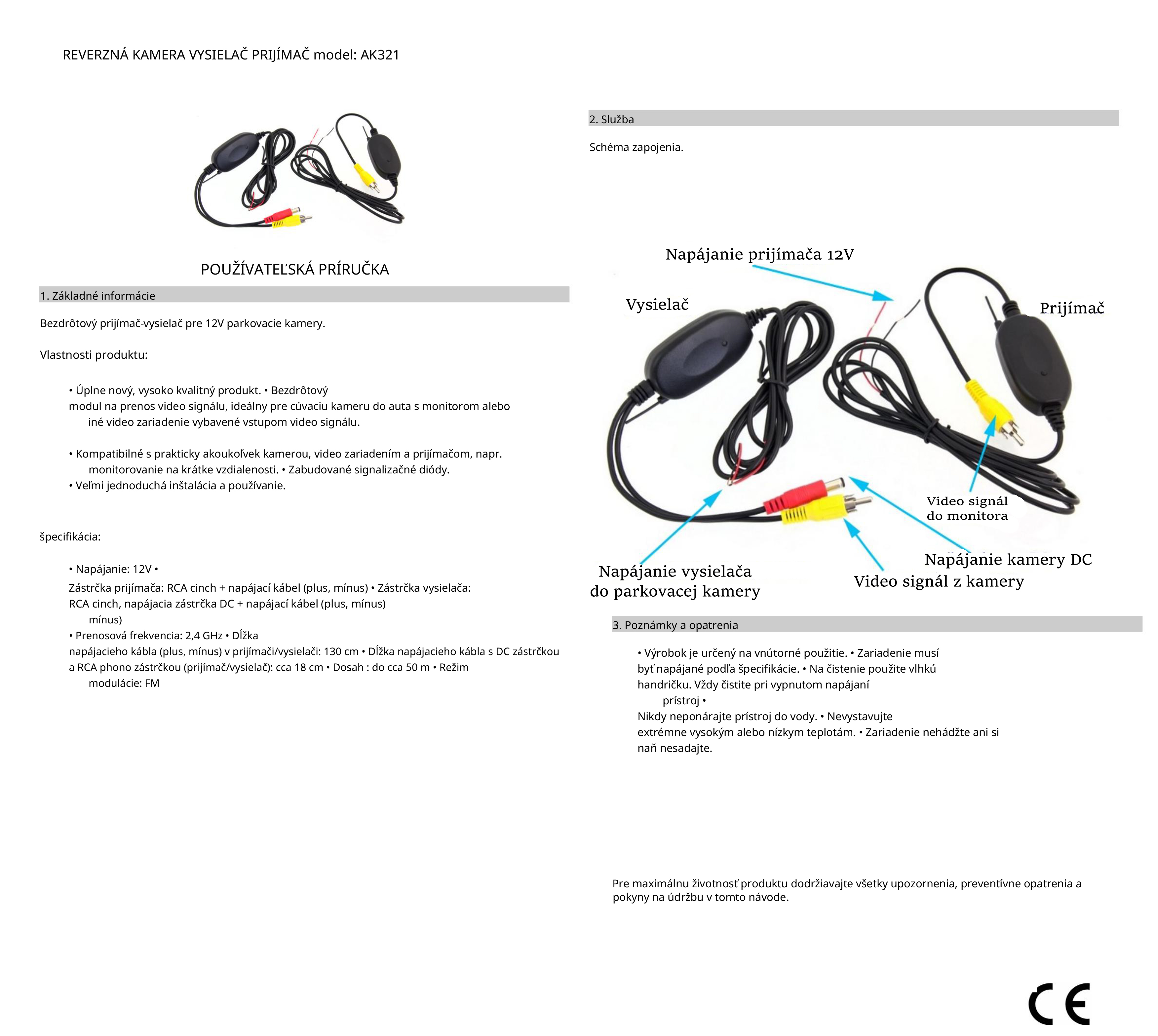 Modul na bezdrôtový prenos video signálu. Skvele sa hodí pre cúvaciu kameru do auta vybavenú monitorom alebo iným video zariadením so vstupom video signálu.