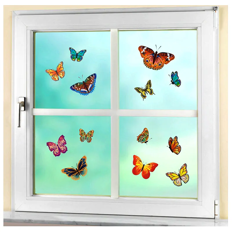 Súčasťou dodávky je 13 kvalitných okenných obrazov s motívom motýľa. Obraz na okno je vyrobený zo 100% polyesteru Rozmery (Š x V): 35 x 35 cm