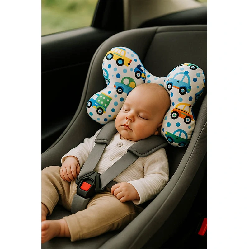 Pri cestovaní s bábätkom je jednou z najčastejších situácií padanie hlavičky do strán alebo dopredu, najmä keď dieťa zaspí. Tento vankúšik motýlik je navrhnutý tak, aby poskytoval jemnú, ale stabilnú oporu hlavy a krku bez obmedzenia prirodzeného pohybu. Vďaka svojmu tvaru pomáha udržiavať hlavičku v správnej polohe, čím zvyšuje komfort počas jazdy autom aj prechádzok v kočíku.