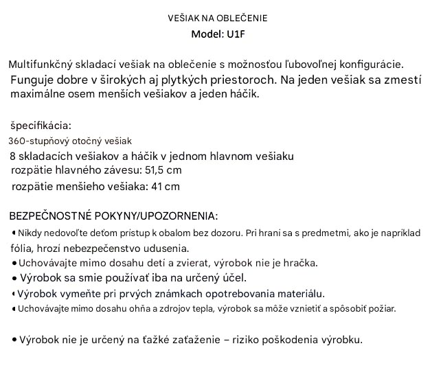 - Typ: multifunkčný skladací vešiak