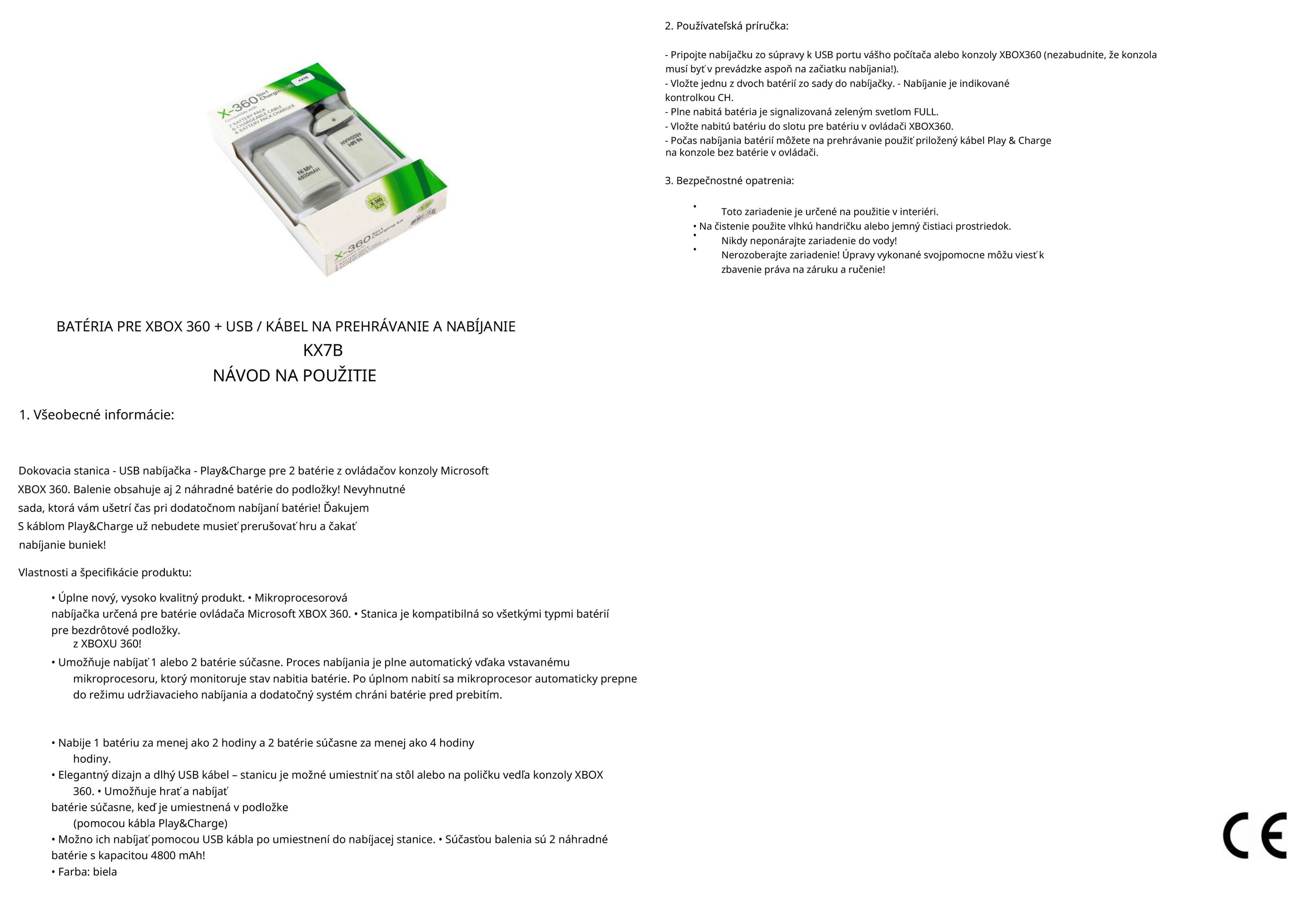 Návod na použitie nabíjacieho setu pre XBOX 360