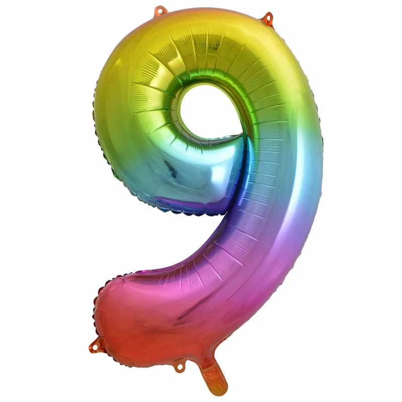 🎈 Veľký, štýlový a nezabudnuteľný – dúhový fóliový balón číslo 9 premení každú oslavu na výnimočný zážitok. Ideálny na narodeniny, výročia aj jubileá.