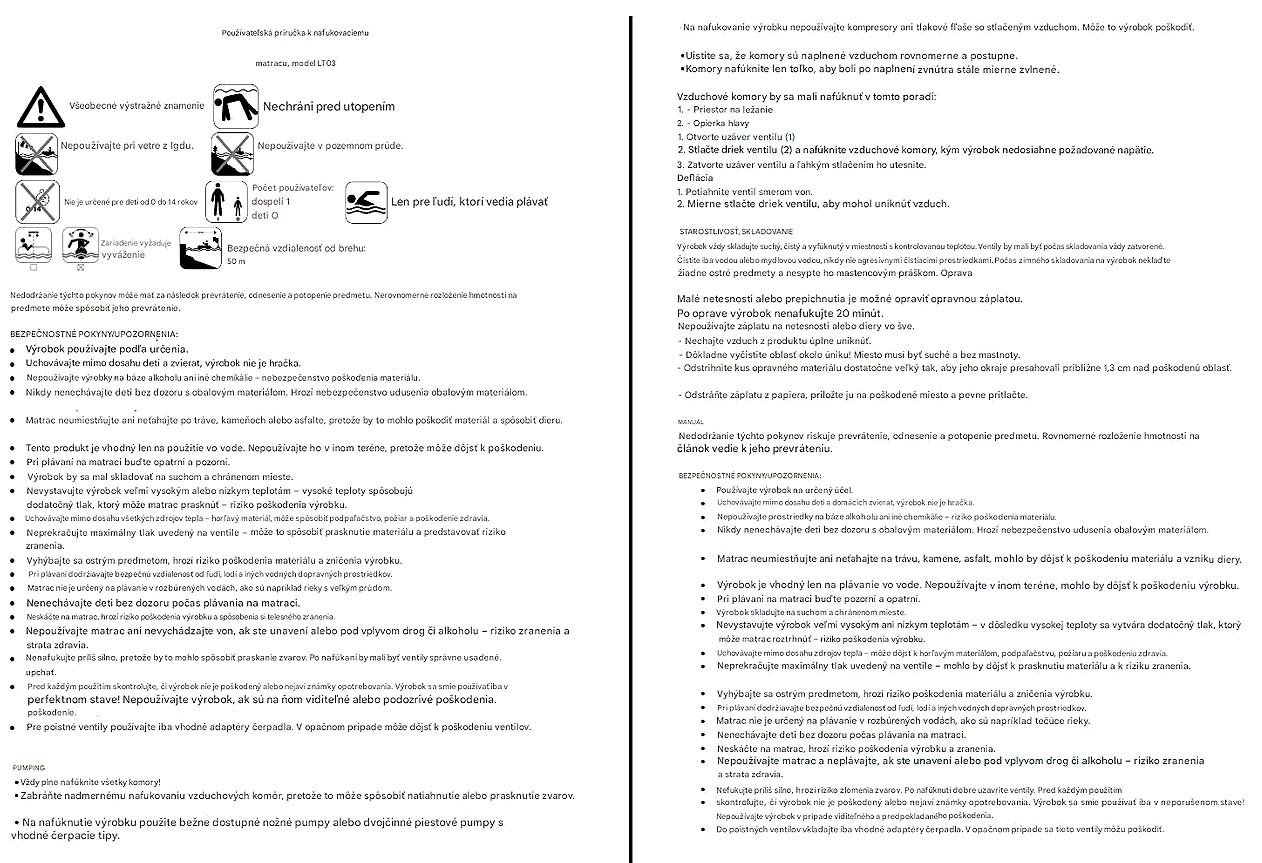 Konštrukcia: viacdielna, samostatne nafukovateľné segmenty