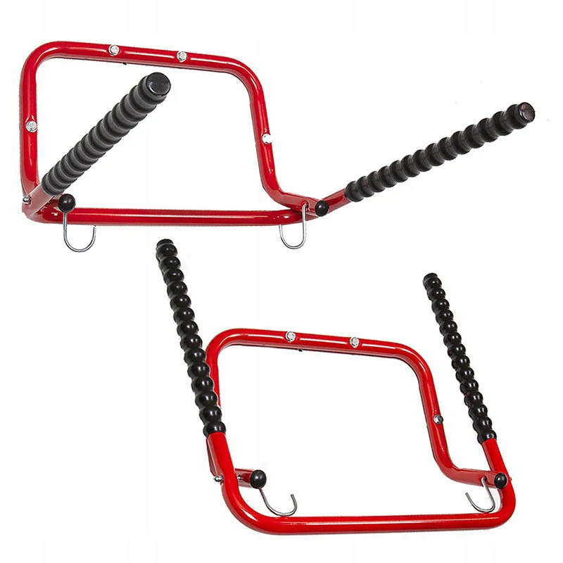 Oceľová odolná rukoväť s nosnosťou, ktorá umožňuje zavesiť dva bicykle (tradičný a elektrický). Prídavné háčiky na zavesenie vybavenia - prilby, batohy, tašky - podľa vašich potrieb a predstáv.