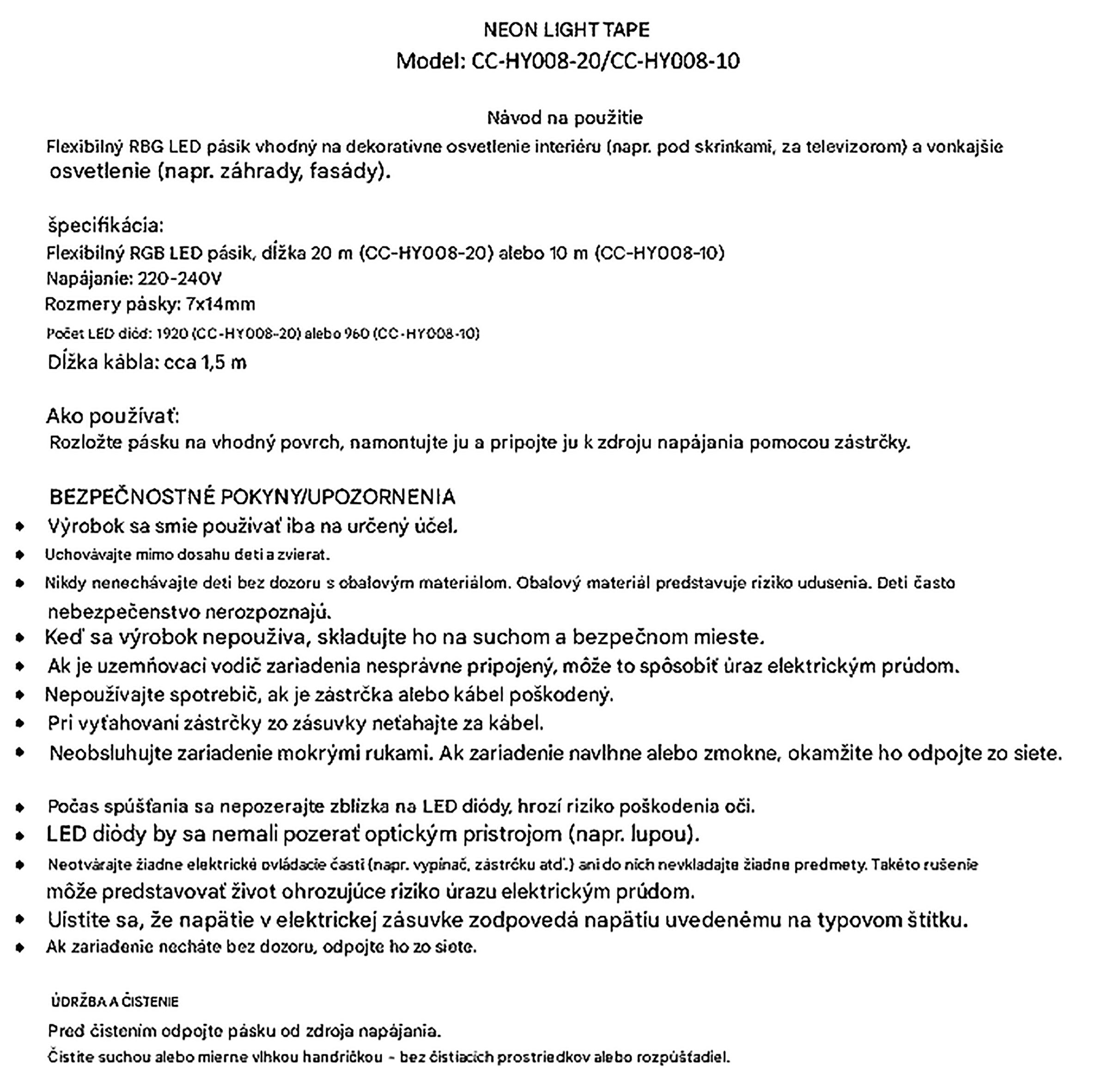 - Dĺžka napájacieho kábla: približne 1,5 m