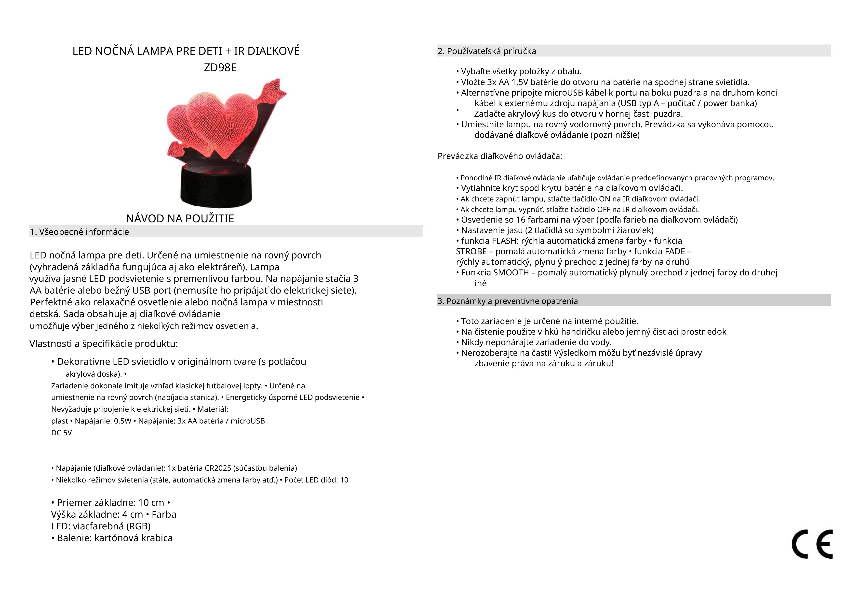 Rozžiarte váš domov s elegantnou LED nočnou lampičkou v tvare dvoch sŕdc prebodnutých šípom, ktorá je vytlačená na akrylovej doske. Táto dekoratívna lampička je ideálna na umiestnenie na plochý povrch, vďaka čomu ju môžete pohodlne postaviť na nočný stolík, policu alebo pracovný stôl. Podsvietenie LED s nastaviteľnou farbou vytvára útulnú atmosféru a je vhodná ako relaxačné osvetlenie alebo lampička do detskej izby. Lampička je napájaná pomocou troch batérií AA alebo cez bežný USB port, čo znamená, že nie je potrebné ju pripájať priamo do elektrickej siete.