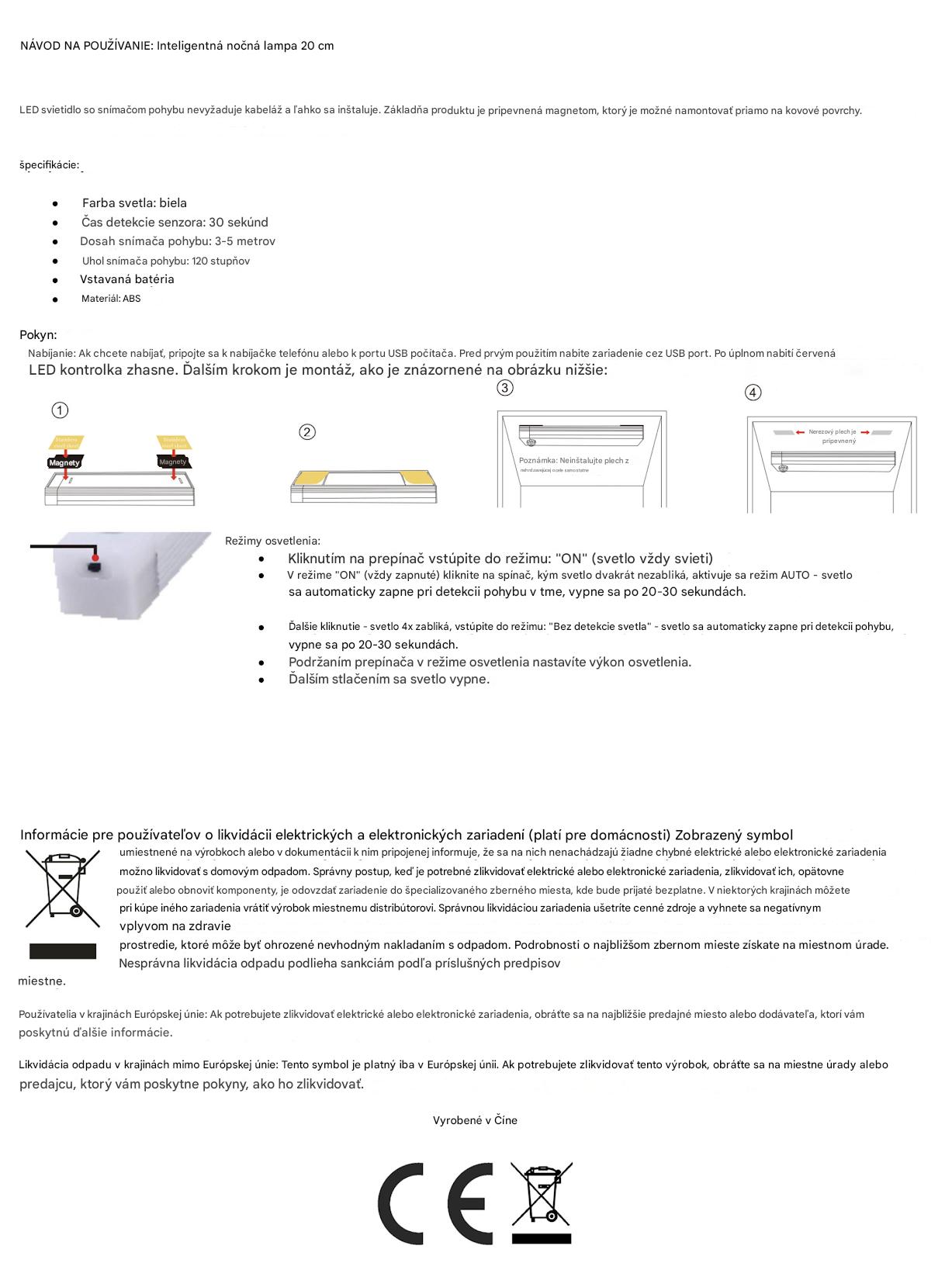 - Čas svietenia po aktivácii: približne 30 sekúnd