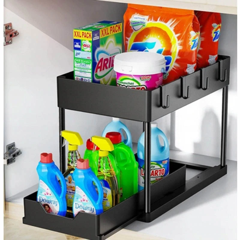 Tento organizér do kuchynskej skrinky je určený pre každého, kto chce mať v skrinkách prehľad a rýchly prístup k uloženým veciam. Vďaka dvojúrovňovej konštrukcii a vysúvateľnej spodnej časti pomáha efektívne využiť priestor, ktorý inak zostáva nevyužitý.