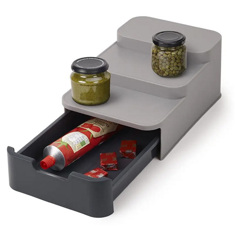 Priestranná zásuvka pojme korenie, kozmetiku a iné malé produkty.