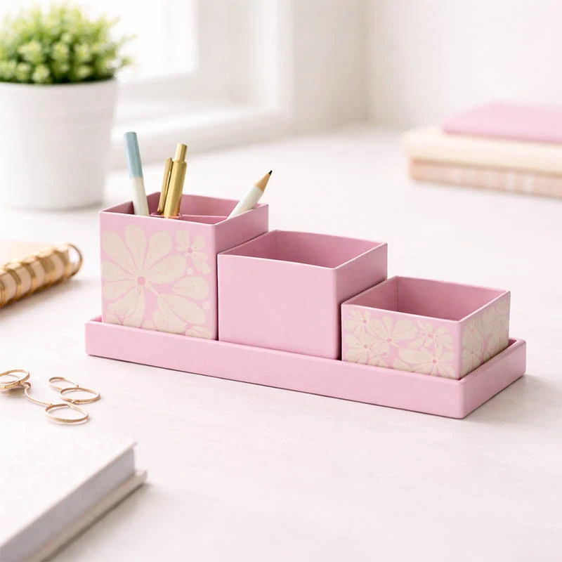 Je ideálny pre pracovný stôl v kancelárii, domácej pracovni aj detskej izbe. Pomáha nielen s organizáciou, ale zároveň pôsobí esteticky a oživí priestor vďaka jemným farbám a vzoru.