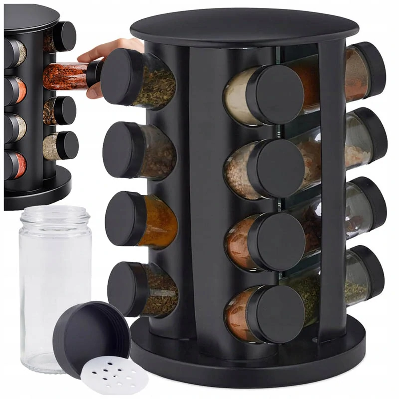 V bežnej domácnosti bývajú koreniny roztrúsené – v zásuvkách, skrinkách alebo v rôznych dózach. Tento stojan ich zhromaždí do jedného kompaktného celku.