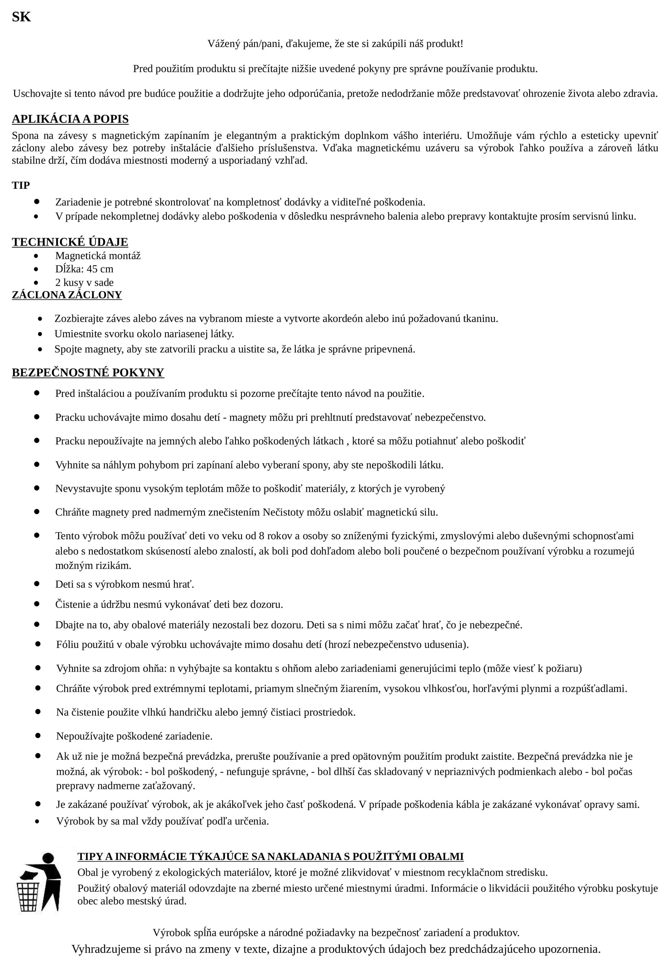 Tieto ozdobné spony sú dokonalým riešením pre každého, kto chce svoj domov oživiť bez veľkých zásahov. Vďaka magnetickému uchyteniu elegantne zopnú závesy a zároveň dodajú miestnosti vkusný detail. Sú vhodné na závesy, sieťové závesy aj klasické záclony.