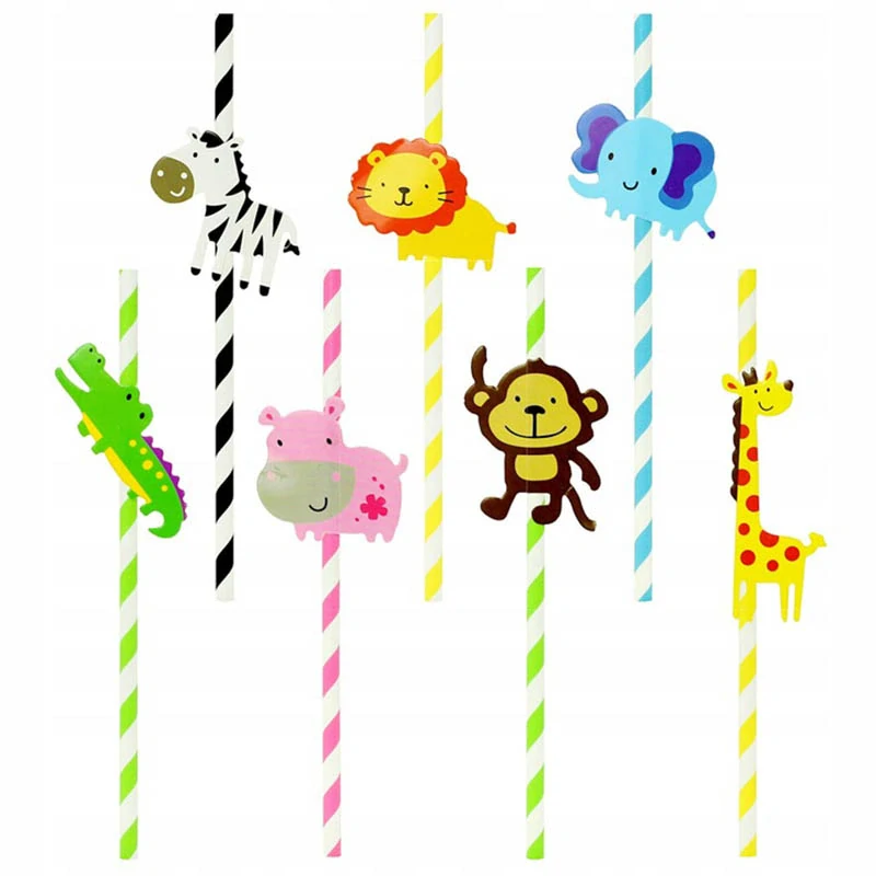 Papierové slamky na pitie s motívom safari zvieratiek – 7 ks