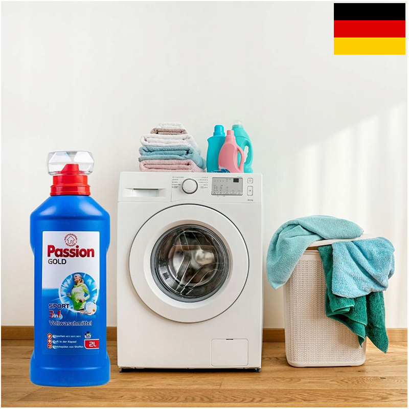 Prací gél - Sport - na pranie farebného oblečenia s ochranným systémom od nemeckej značky PASSION GOLD. Obsahuje prídavok mydla, ktoré zosilňuje umývací účinok a pôsobí deštruktívne na povrch mikróbov – baktérií a vírusov.