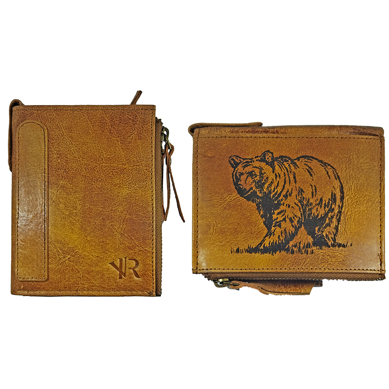 Veľká peňaženka v retro štýle s dvomi vreckami na mince. Na zadnej strane je vygravírovaný motív medveďa. Ideálny darček pre poľovníkov.