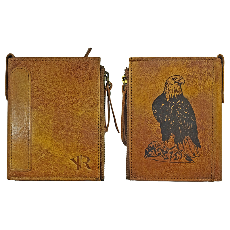 Veľká peňaženka v retro štýle s dvomi vreckami na mince. Na zadnej strane je vygravírovaný motív orla. Ideálny darček pre milovníkov prírody.