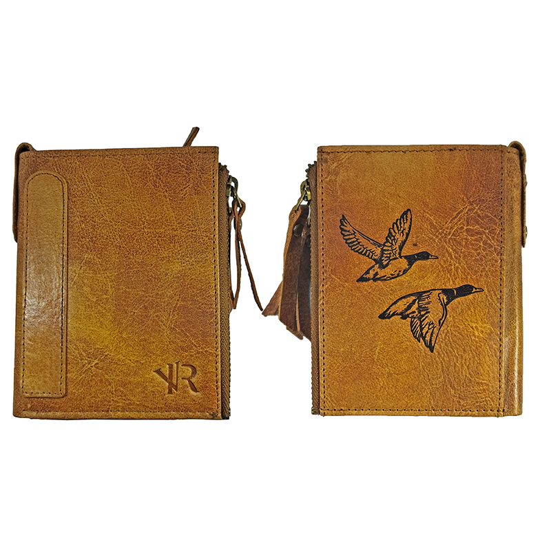 Veľká peňaženka v retro štýle s dvomi vreckami na mince. Na zadnej strane je vygravírovaný motív Kačky. Ideálny darček pre poľovníka.