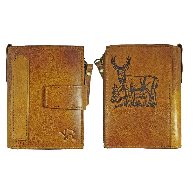 Pánska retro kožená peňaženka - Rovicky. Na zadnej strane je vygravírovaný motív jeleňa. Ideálny darček pre poľovníka.