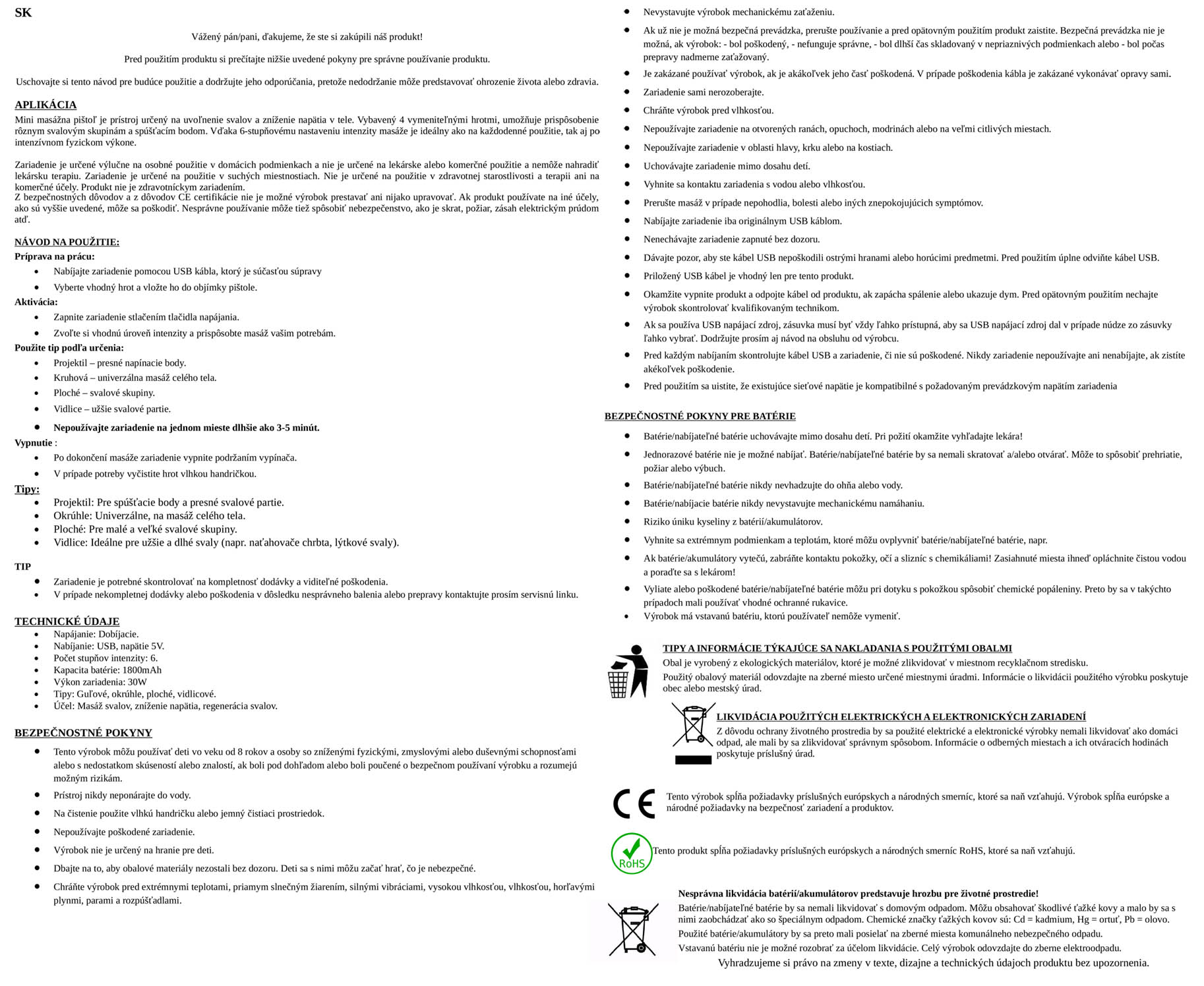Plne nabitá batéria s kapacitou 1800 mAh vydrží niekoľko masážnych cyklov v závislosti od intenzity.