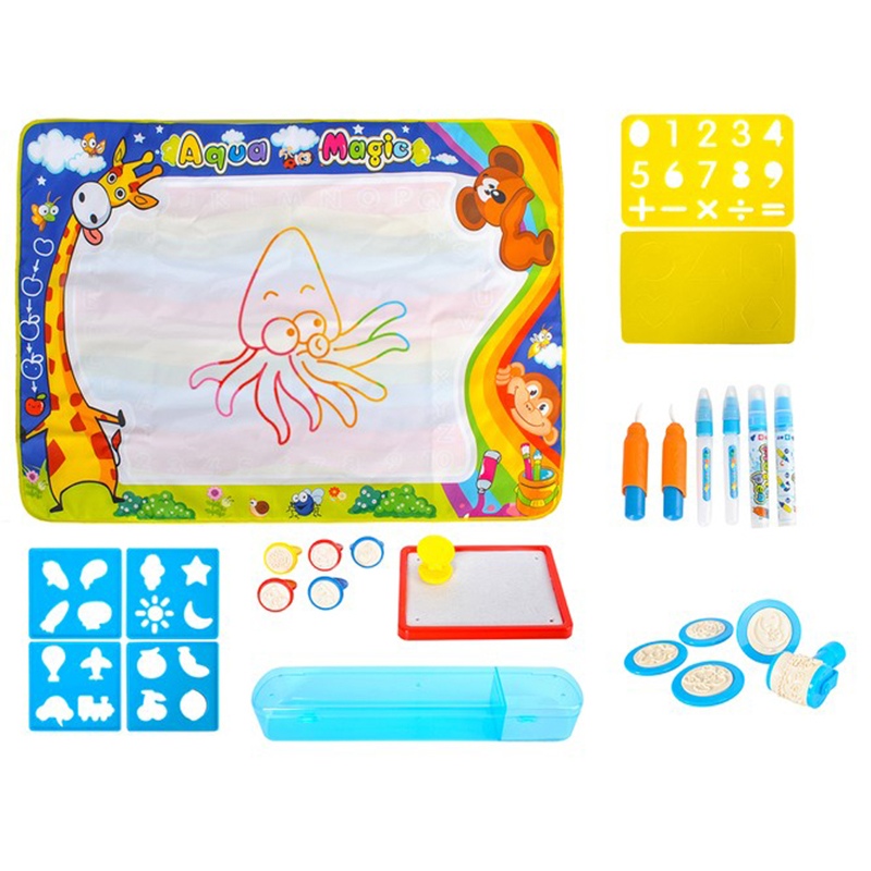 Vďaka použitiu špeciálnych, nefarbiacich vodných fixiek, pri hre nehrozí riziko, že dieťa bude maľovať podlahu, steny alebo tvár. Nefarbiace fixky zabezpečia, že po hraní bude všetko čisté a upratané. Žiadny neporiadok šetrí čas na upratovanie a zbytočné nervy. Magické fixky je možné naplniť vodou mnohokrát, takže zábava nikdy nekončí. Keď kresba zaschne, obrázky zmiznú a môžete znova kresliť, koľko chcete! Podložku môžu používať aj menšie deti pod podmienkou, že sa nebudú hrať s fixkami a pečiatkami, ktoré obsahujú malé časti. Pod dohľadom dospelého môže dieťa používať podložku, napríklad si namáčať ruky vo vode a napodobňovať tvary na podložke.