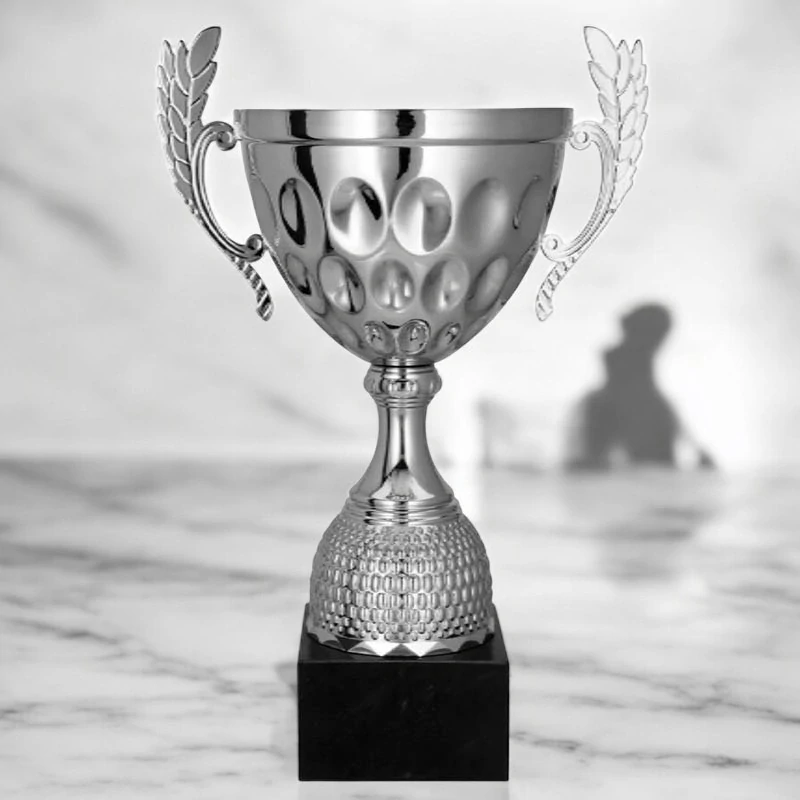 Tieto strieborné poháre sú symbolmi víťazstva, ktoré nemožno prehliadnuť. Ich klasická farba, lesklý povrch a elegantné detaily dodávajú celku lesk, ktorý upúta a je zapamätateľný. A čo viac, jemne vypuklá štruktúra misky a nôh prekvapí a krásne odráža svetlo. Dizajn pohárov dotvárajú klasické ušká s rastlinným motívom. To všetko robí z pohárov ideálnu voľbu na uznanie športových úspechov. Ich silný, pevný a predsa jemný dizajn je dokonalým odrazom vytrvalosti a úspechu na najvyššej úrovni.