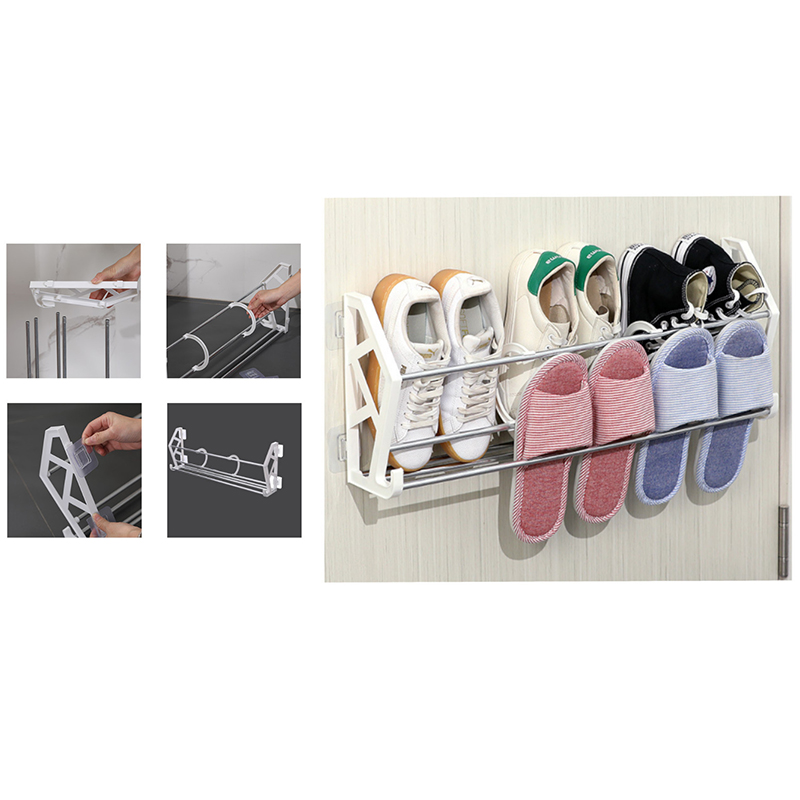 Dvojposchodová polička alebo stojan na obuv sa pripevňuje pomocou pevných samolepiek.