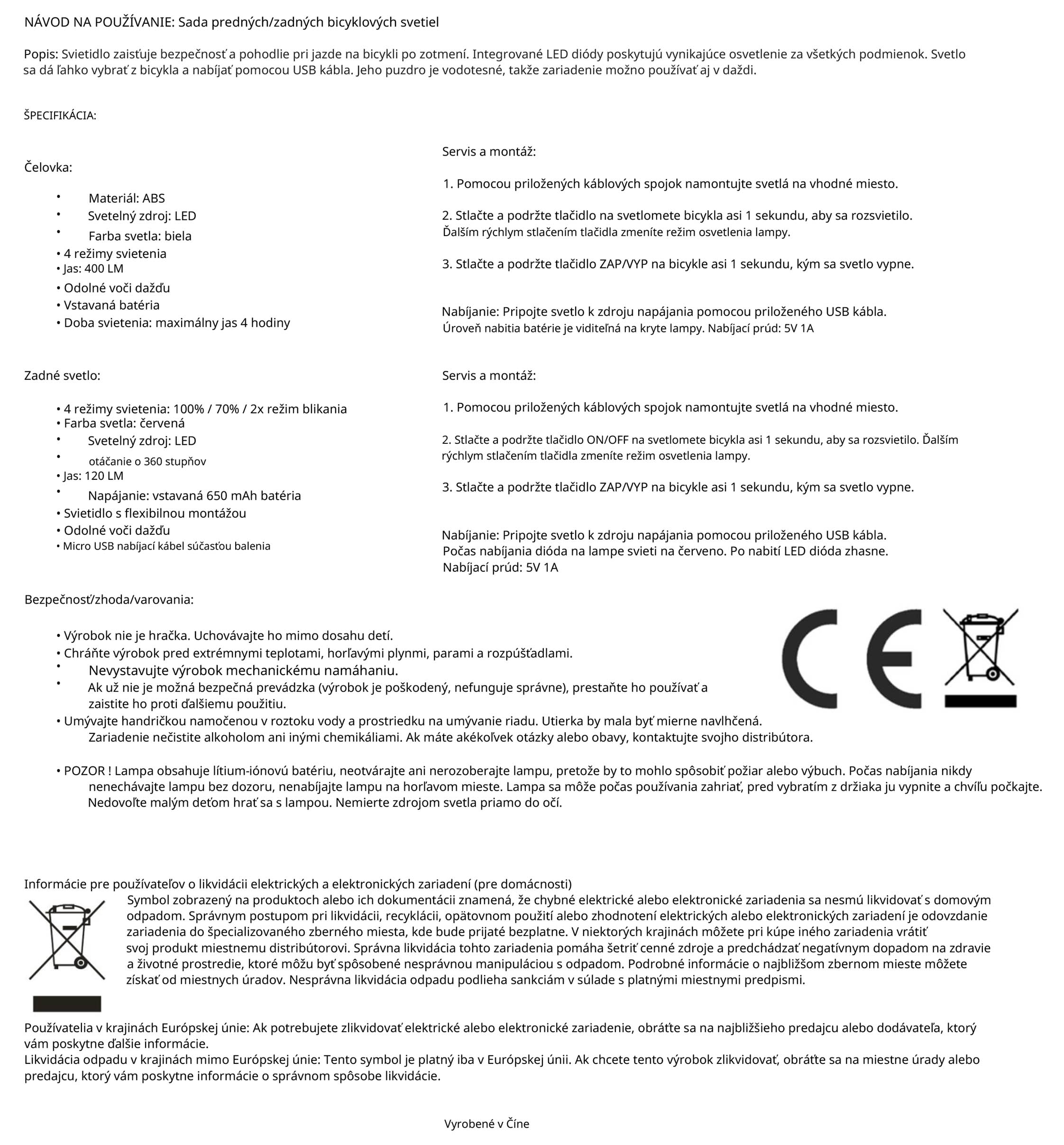 - Predné a zadné svetlo na bicykel