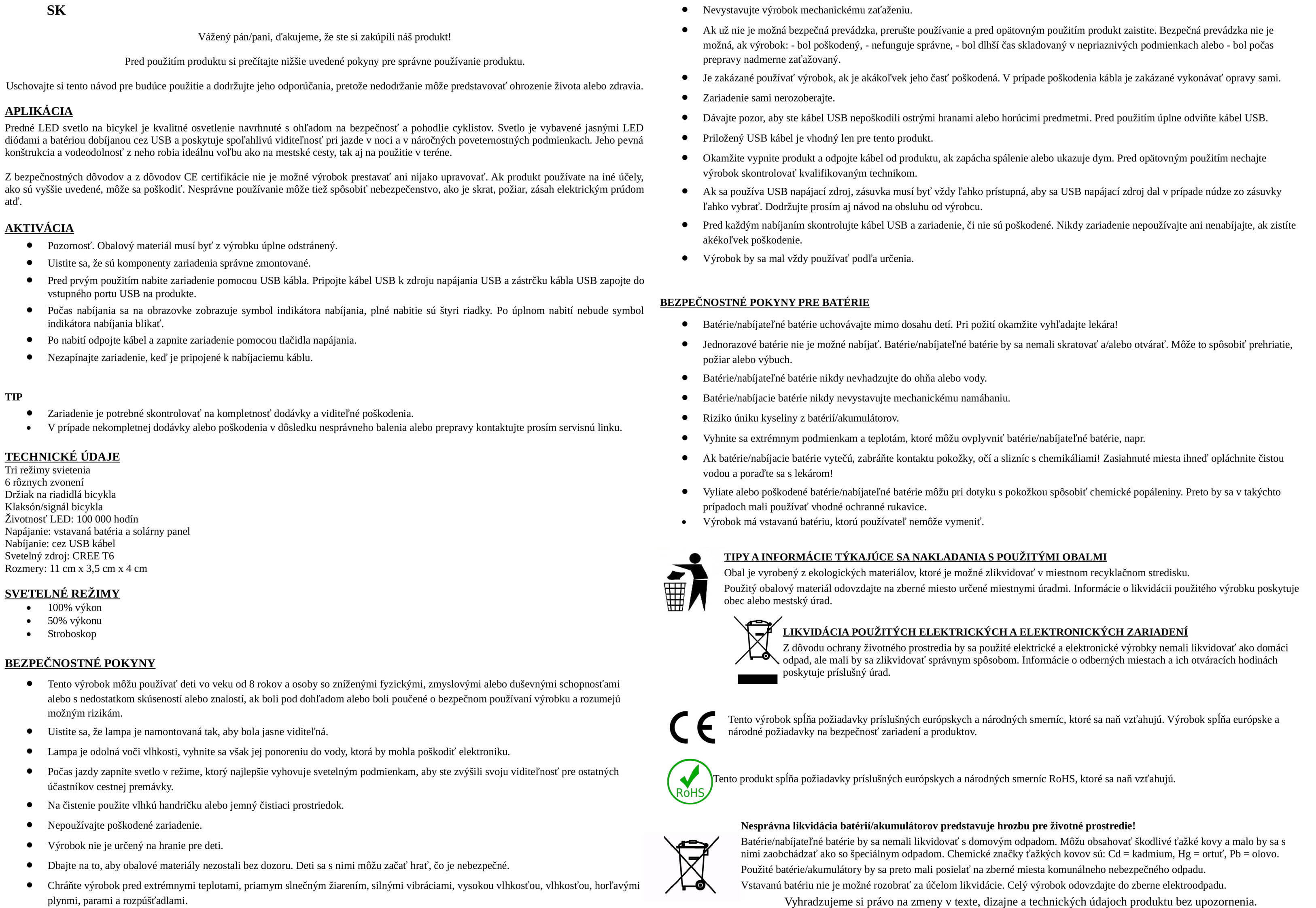 - režimy svietenia: 100 % / 50 % / stroboskop