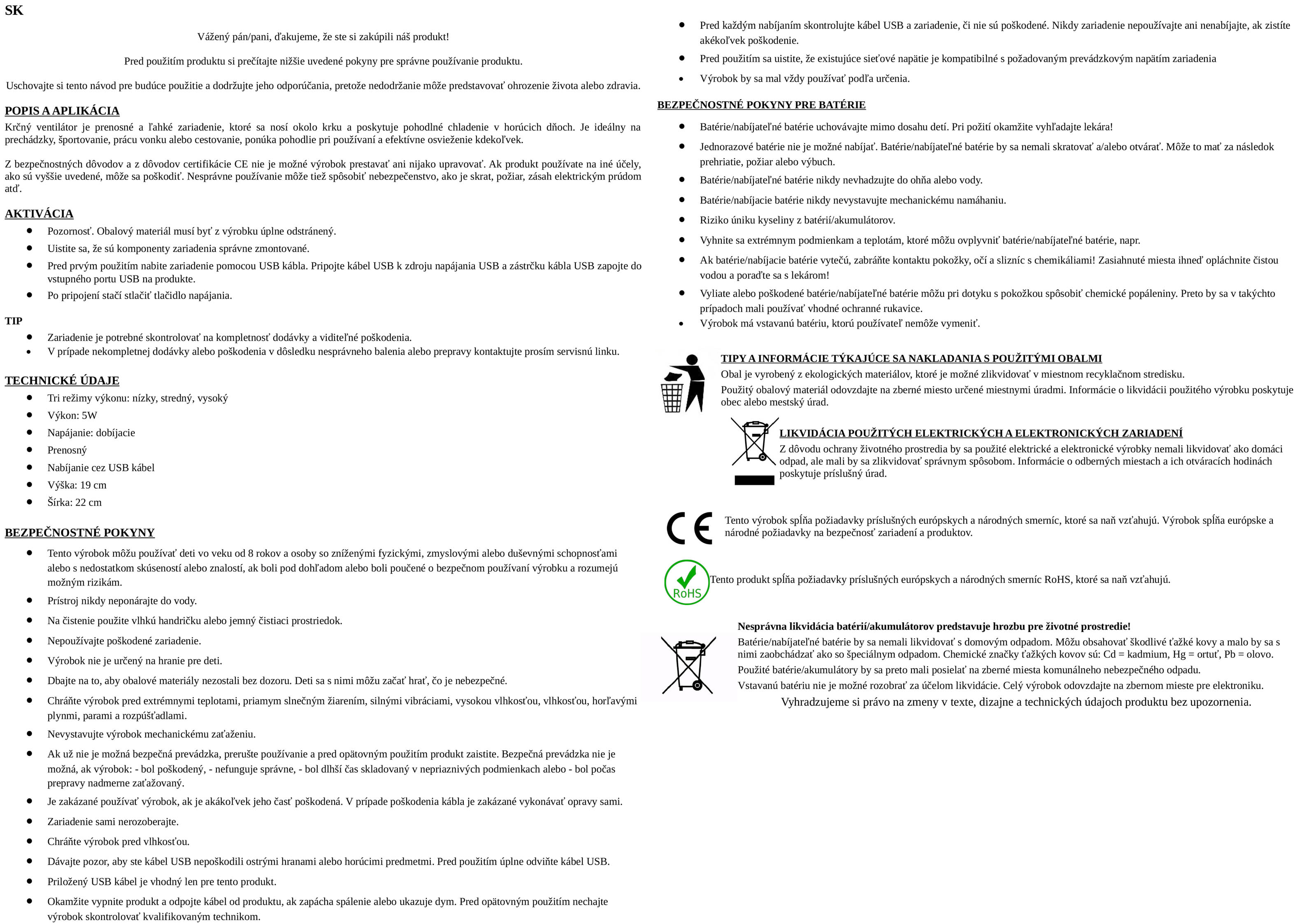 Po použití ventilátor vypni a nechaj ho opäť nabiť podľa potreby.