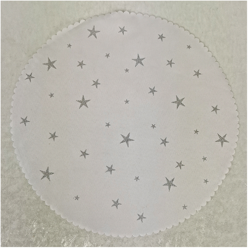 Vianočné vyšívané prestieranie so striebornými hviezdami.