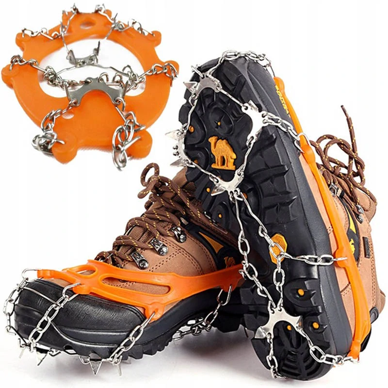 - Vylepšená stabilita: Každý návlek má 8 hrotov z tvrdenej nerezovej ocele, ktoré sú rovnomerne rozložené po celej podrážke, čím poskytujú stabilitu na šmykľavom povrchu.