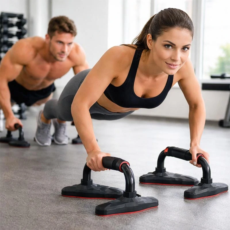 Klasické kľuky na podlahe často spôsobujú neprirodzené ohýbanie zápästí. Pri použití rukovätí sú ruky v neutrálnej polohe, čo výrazne znižuje tlak na kĺby. To znamená komfortnejšie cvičenie aj pri vyššom počte opakovaní.