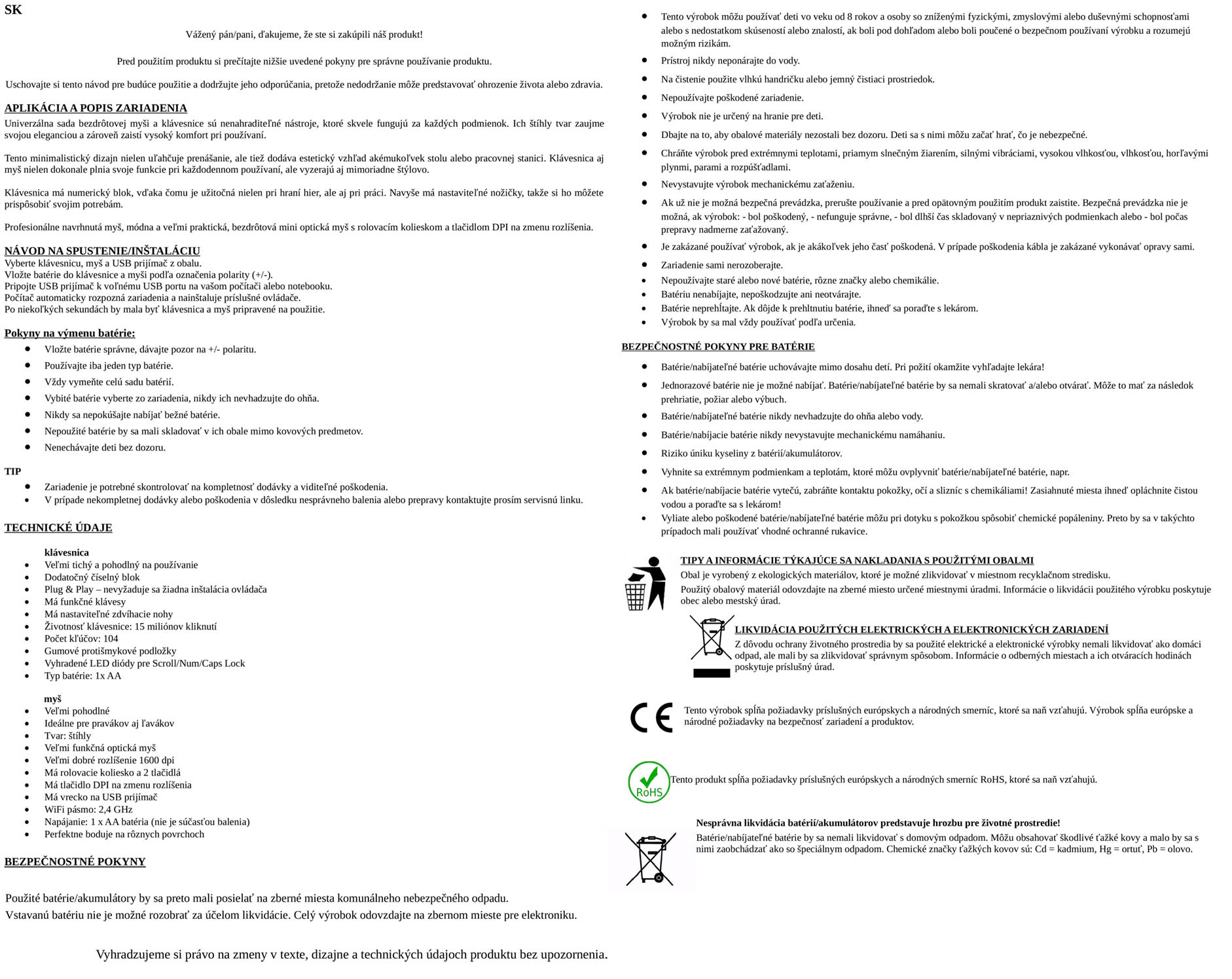 - Sada bezdrôtová klávesnica + myš JX-K90 čierna