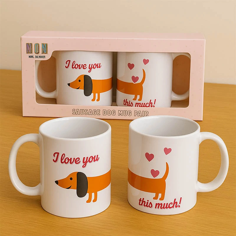 Vyjadrite lásku štýlovo a s humorom! Táto dvojica keramických hrnčekov so spojeným dizajnom jazvečíka je ideálnym darčekom pre zamilovaných. Perfektná pre páry, milovníkov psov alebo jednoducho na rannú dávku dobrej nálady ☕💞