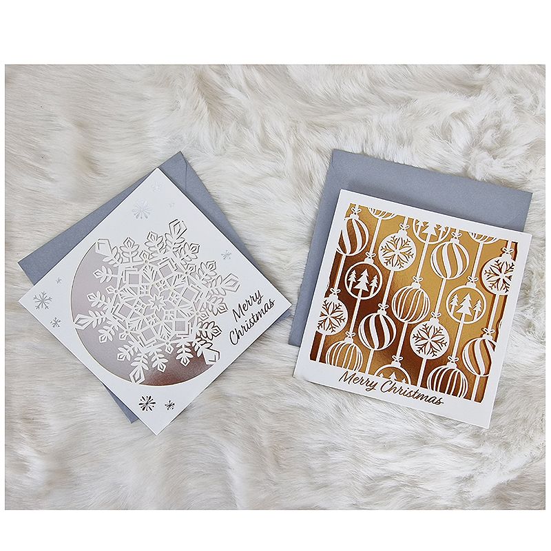 Táto nádherná sada obsahuje 5 pohľadníc - 2 vzory. Na prednej strane je venovanie s prianím štedrých Vianoc. Na pohľadnice môžete samozrejme dopísať aj vlastné venovanie s podpisom, po ich otvorení nato mate vyhradený voľný priestor.
