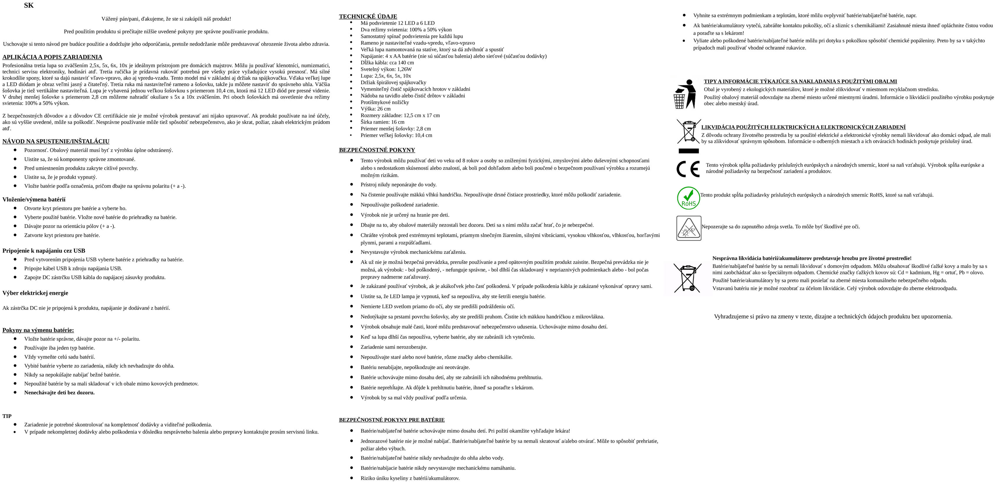 Návod na použitie lupy Tretia ruka s LED podsvietením