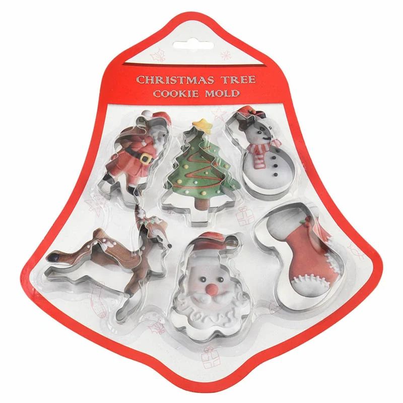 S touto sadou 6 vianočných formičiek vytvoríte originálne sušienky, perníky či cukrové dekorácie, ktoré okamžite navodia pravú sviatočnú atmosféru. Rôzne tvary – stromček, snehuliak, sob, Mikuláš, hlava Mikuláša a vianočná pančucha – dodajú vašim výtvorom jedinečný vzhľad a potešia celú rodinu.