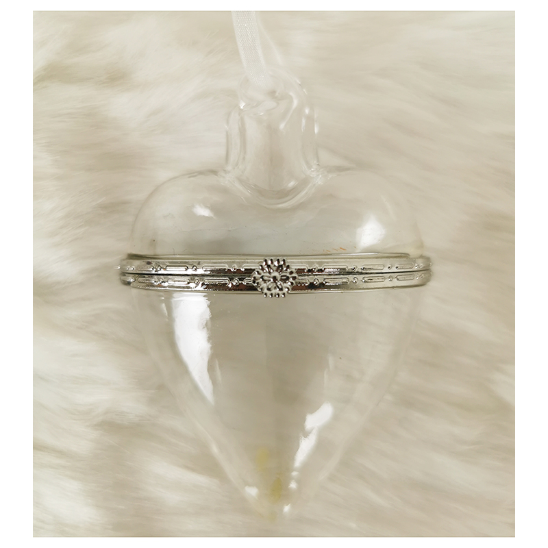 Výnimočná dekorácia - sklenené srdičeko na zavesenie. Srdiečko sa dá otvoriť, takže je vhodné aj ako originálny obal na darček - prsteň, náušnice, peniaze. Krásna dekoráca. Výška cca. 9cm.